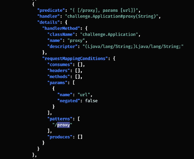 Похоже, есть ручка для проксирования с параметром url. Именно так нас и поприветствовало приложение в начале. Итого: SSRF.