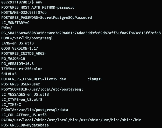 В итоге оба пути приводят нас в контейнер с базой. Забираем креды для дальнейших подключений.